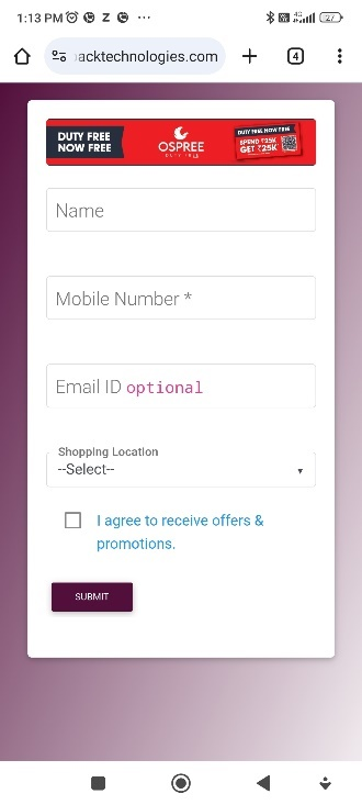 On scanning, the QR code redirects the passenger to basic detail filling form. These details are mandatory for us to capture before giving any voucher to ensure entry is registered